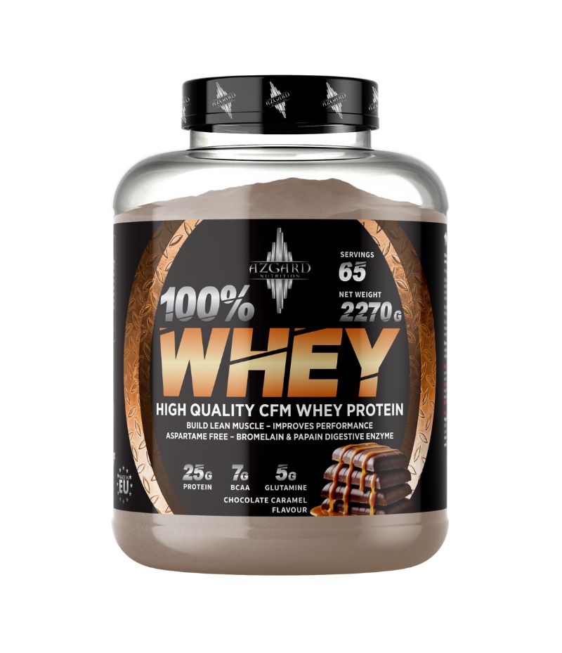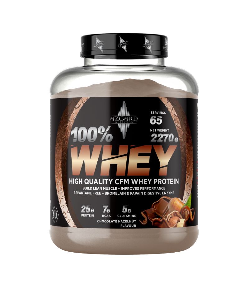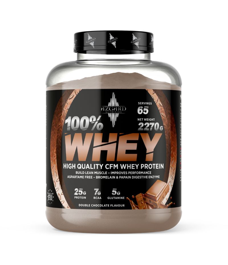 Wir alle wissen, dass Gewichtstraining Schäden an den Muskelfasern verursacht. Während sie repariert werden, bauen wir stärkere Fasern auf, um zukünftige Schäden zu vermeiden. Die Proteine sind die Bausteine in diesem Prozess. Für Gewichtstraining wird eine Proteinzufuhr von 2 g pro Kilogramm Körpergewicht empfohlen. Das sind 200 g Protein für einen Athleten, der 100 kg wiegt. Ohne die richtige Menge an Protein kann man keine Muskeln aufbauen. Ausreichend Protein über traditionelle Mahlzeiten zu bekommen, ist für viele Athleten eine Herausforderung. Azgard Whey kann die optimale Lösung sein, um deine Proteinzufuhr zu erhöhen. Whey-Protein hat den höchsten biologischen Wert unter den Proteinen. Es ist ein leicht verdauliches, vollständiges Protein, was bedeutet, dass es alle essentiellen Aminosäuren enthält. Verwende 1 Messlöffel Azgard Whey unmittelbar nach dem Training, um hochwertige Proteine bereitzustellen und das Muskelwachstum zu maximieren.